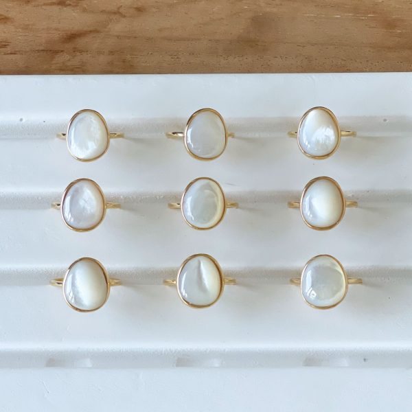 A gold statement ring with mother of pearl that is said to spark inspiration and intuition – you’ll get a big dose of both with this mother of pearl ring. The mother of pearl stone measures 12mm x 10mm