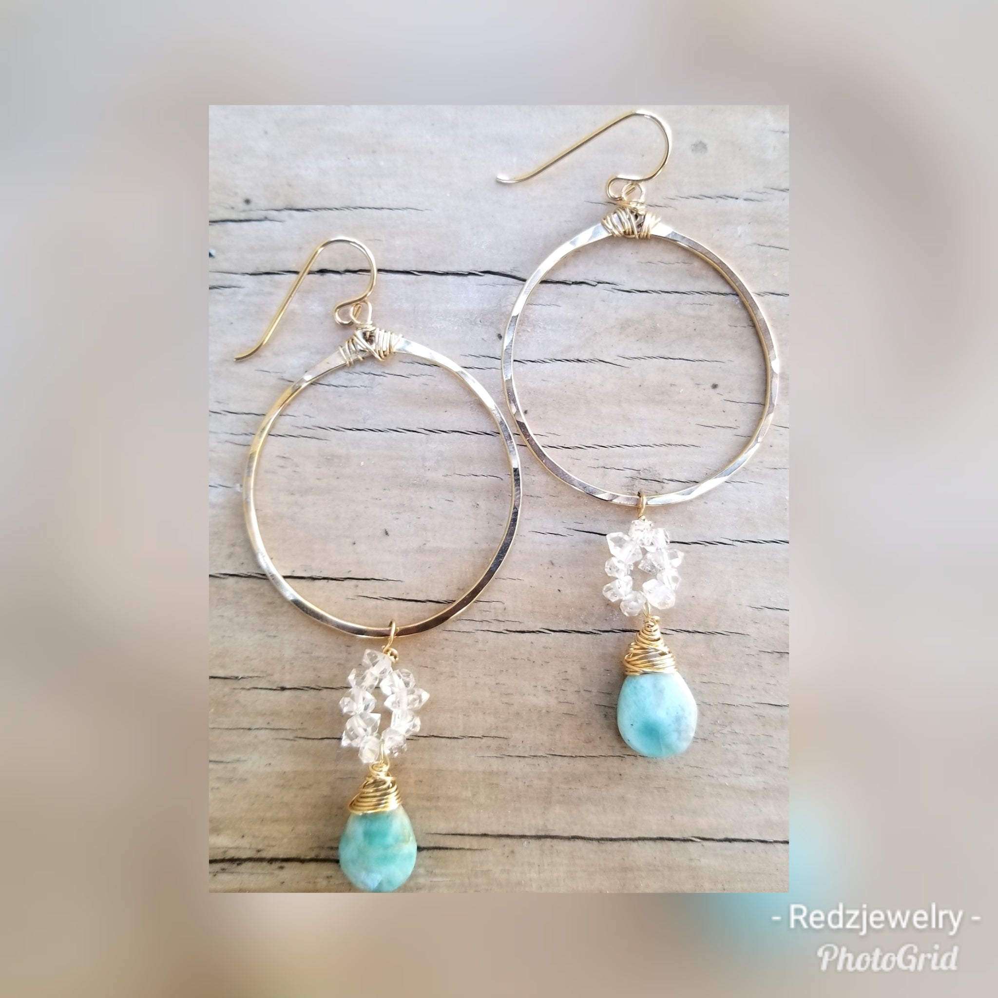 Larimar Herkimer Diamond Hoops