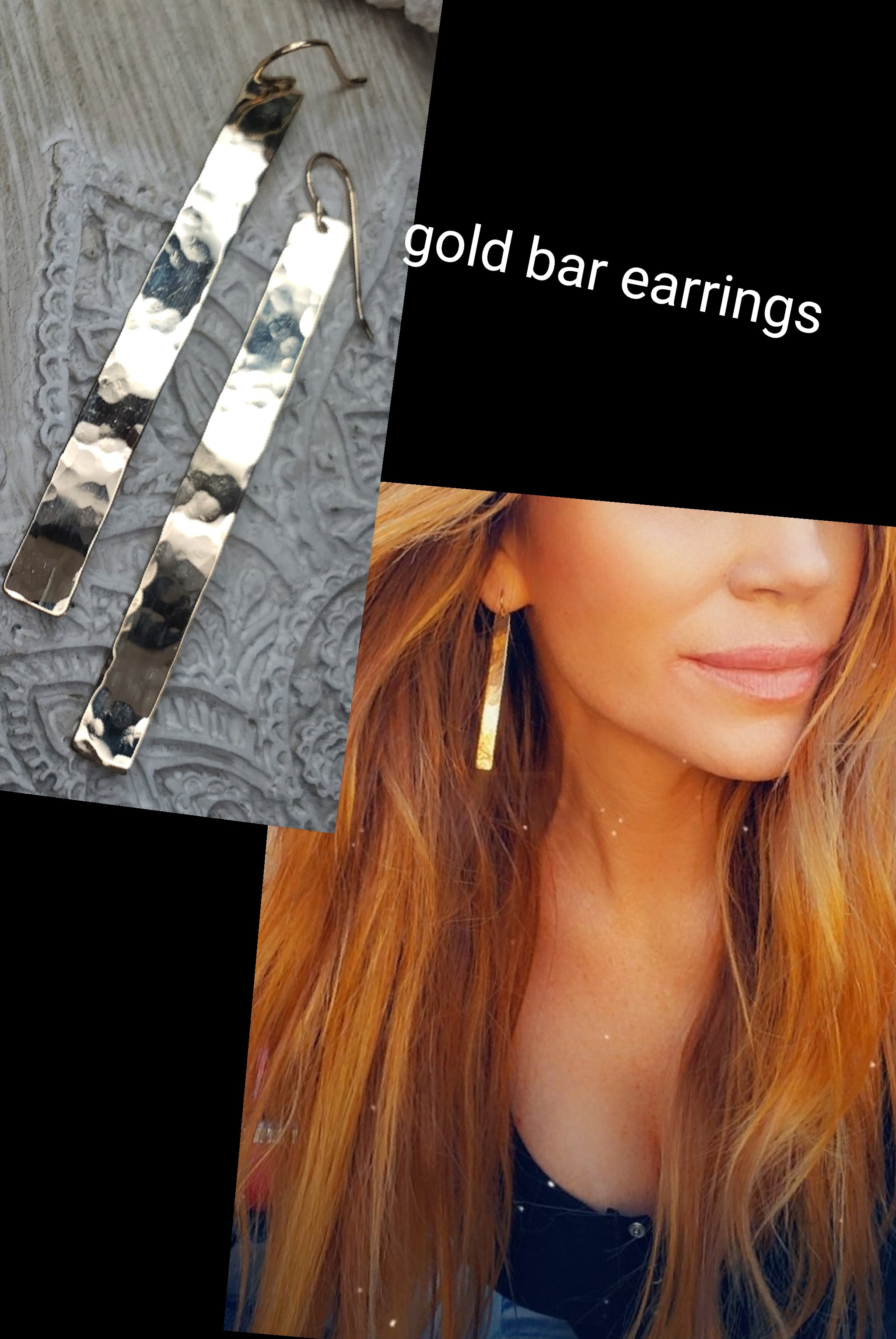 Long hammered bar earrings