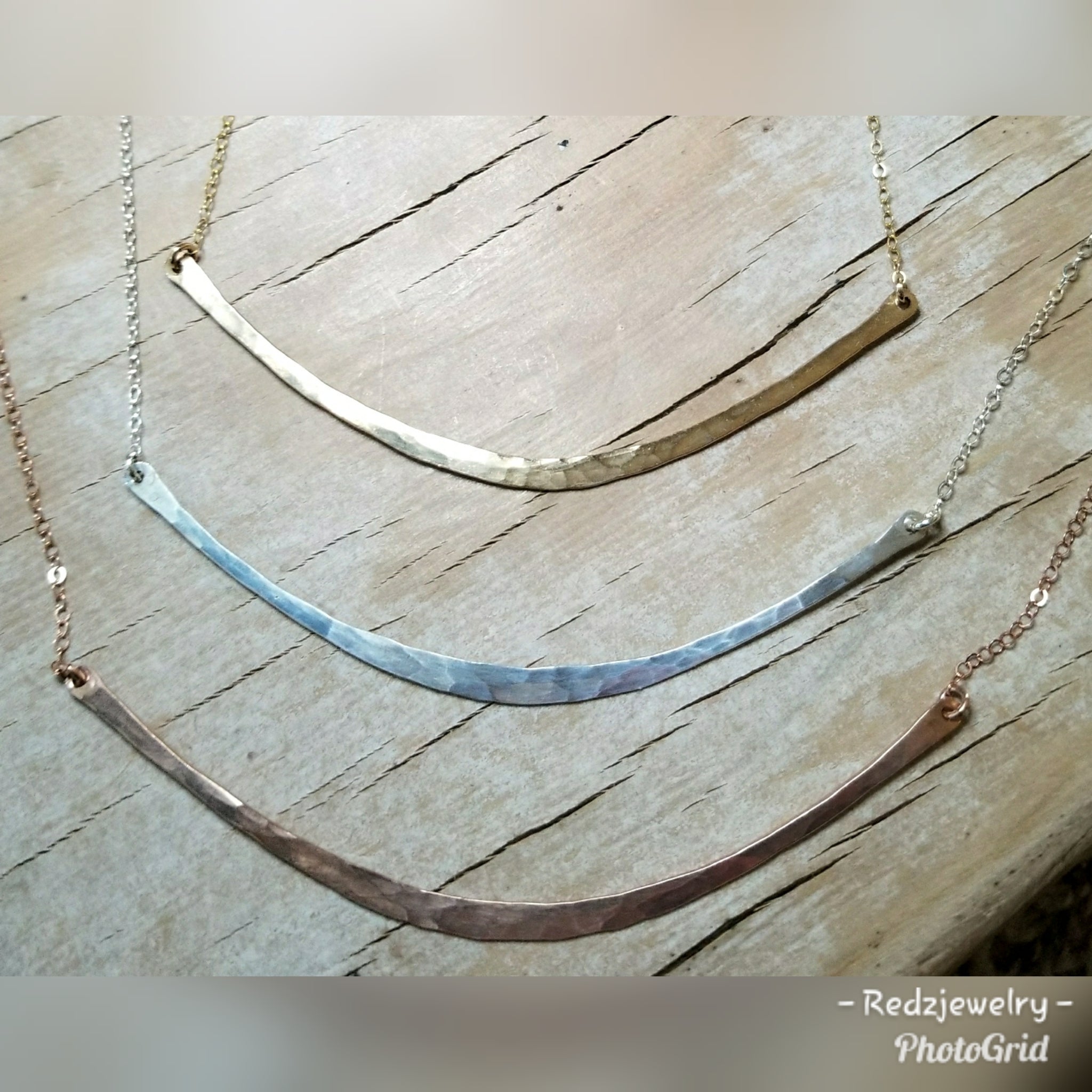 Make a statement with the light catching Hand forged Arch Bar Necklace