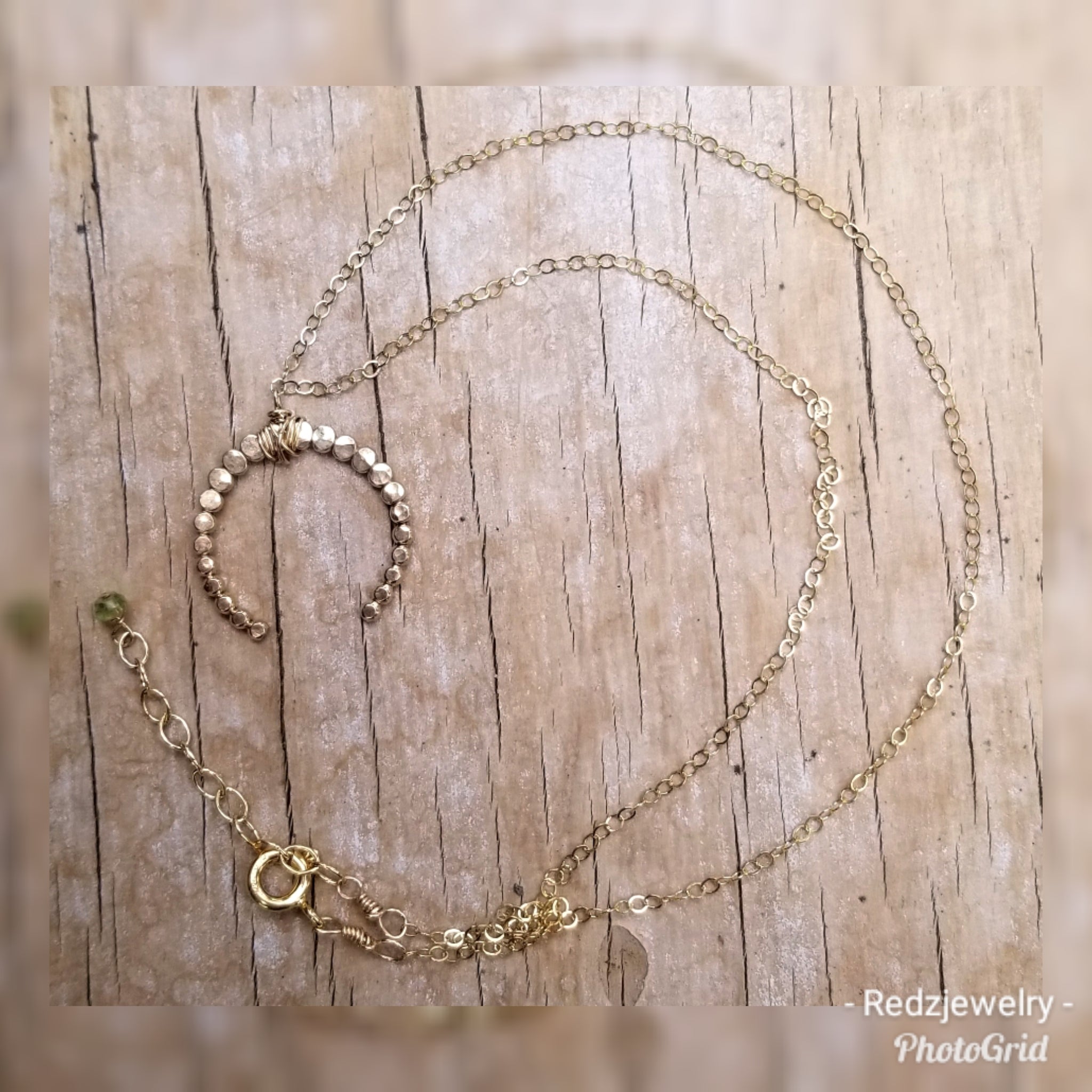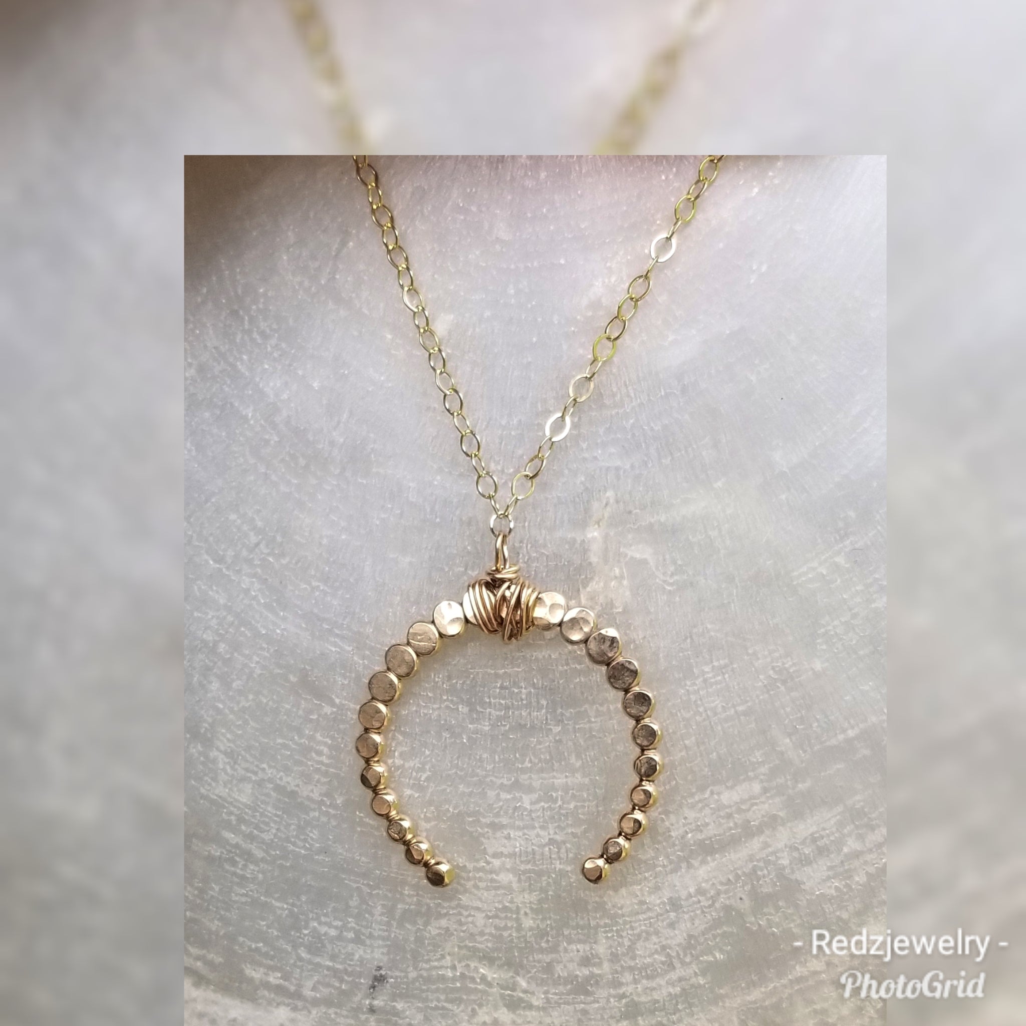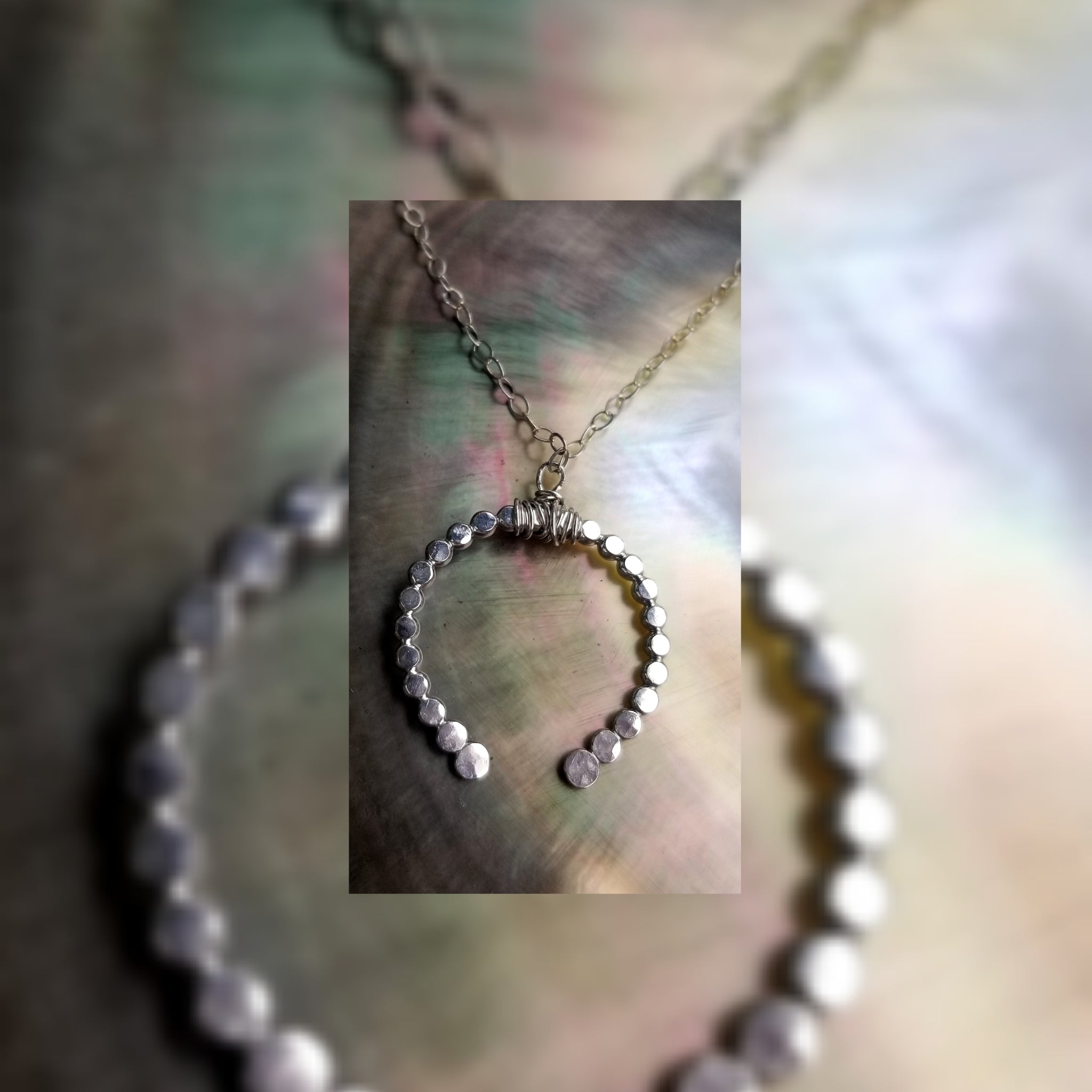 Cutest little crescent necklaces made with beaded wire, hammered for texture
