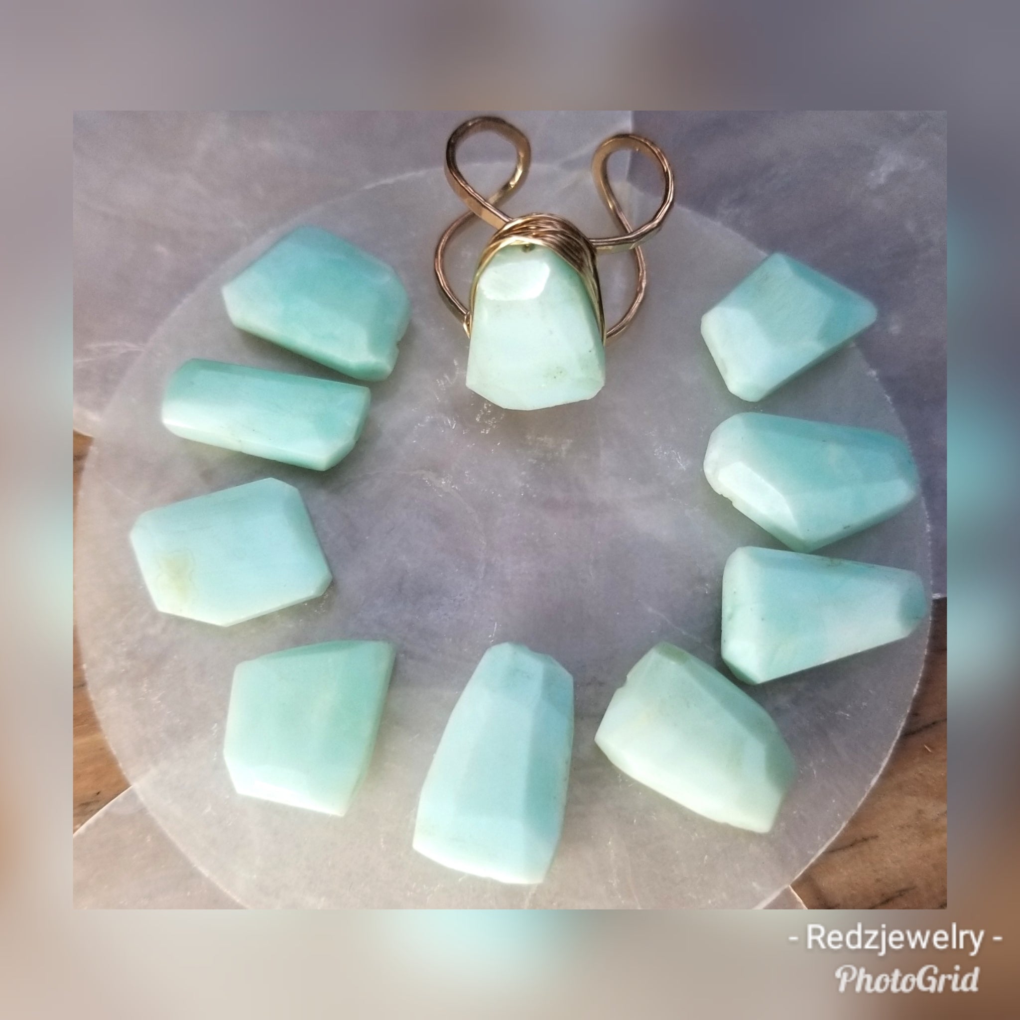 These faceted pieces Peruvian Opal Are so pretty. Each piece varies in shape. Each piece will be similar……I hand pick the best pieces so each will look beautiful. There are shades of tropical blue.
