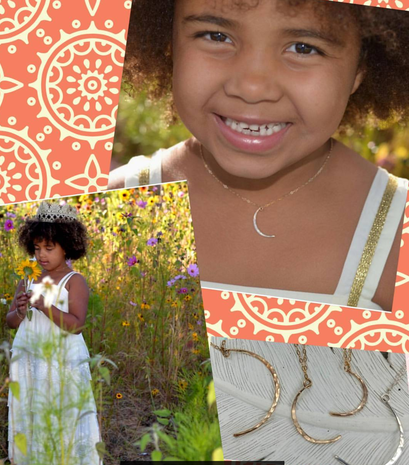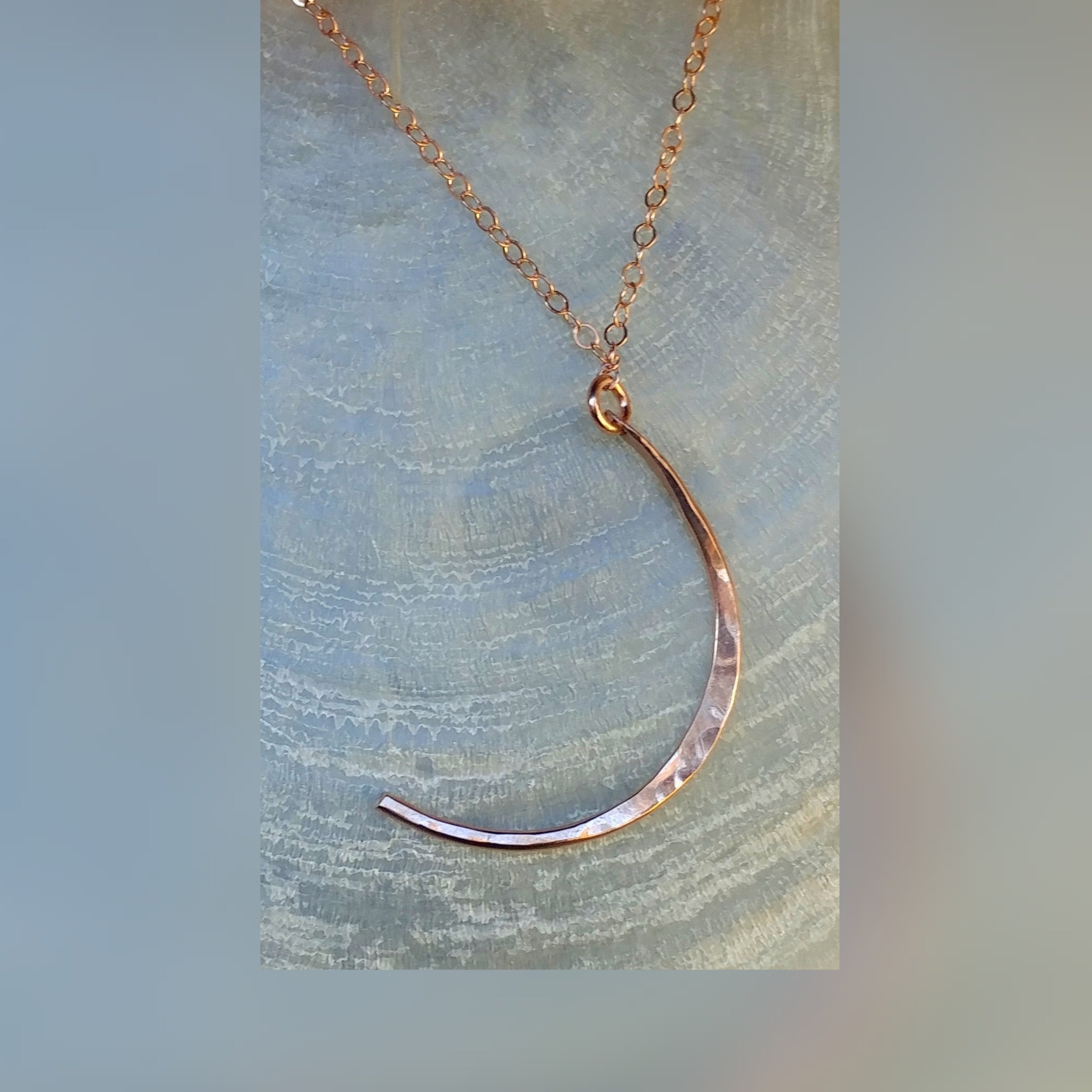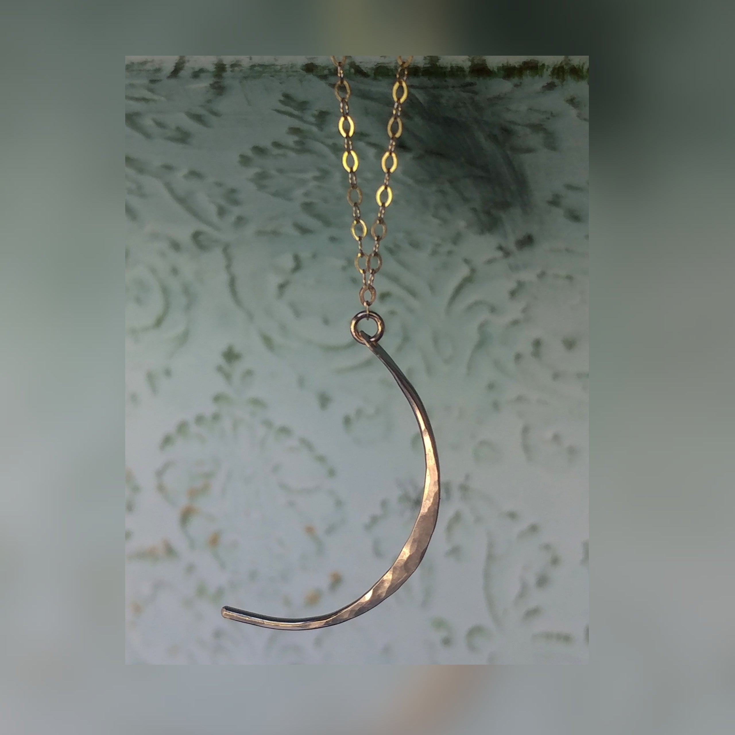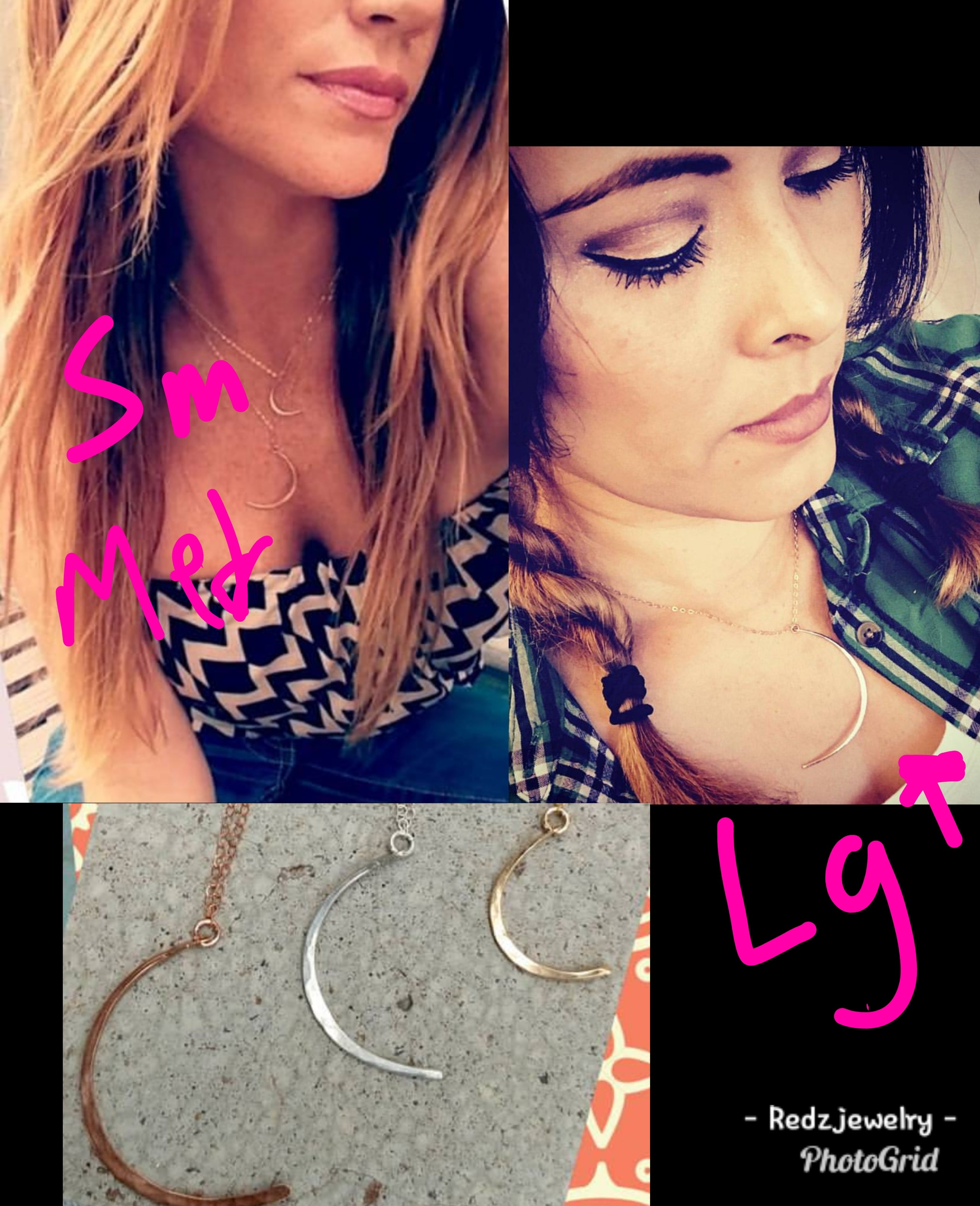This is a necklace you could wear everyday! Simple sleek hand shaped and hand forged Crescent Moon. I’ve included photos to show how the different sizes of moons will look. Small medium or large size. Also a listing is Available in a mommy & me set or just for your little girl. And another listing where there is a tiny coin dangling that you can personalize with a stamped star or any single Letter.