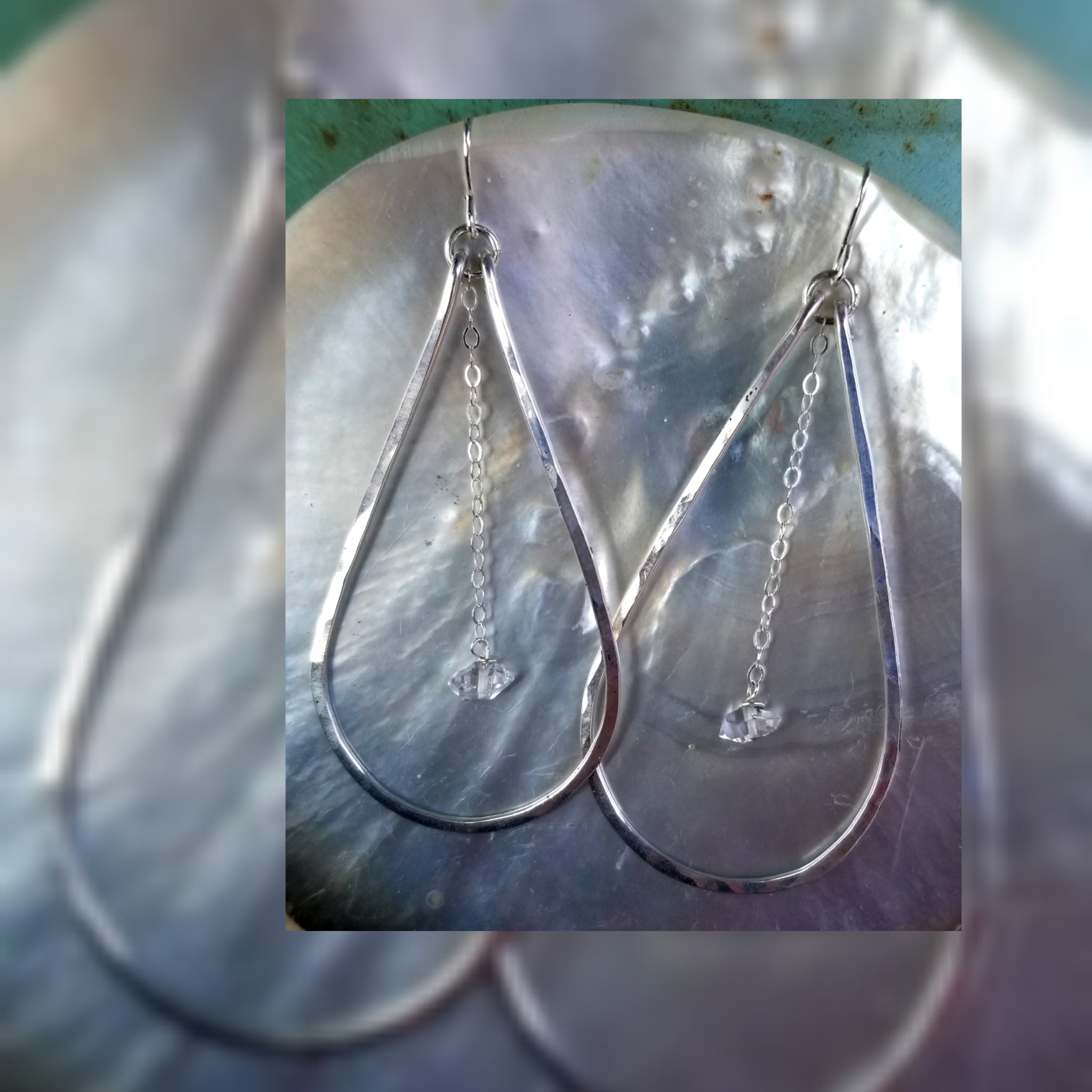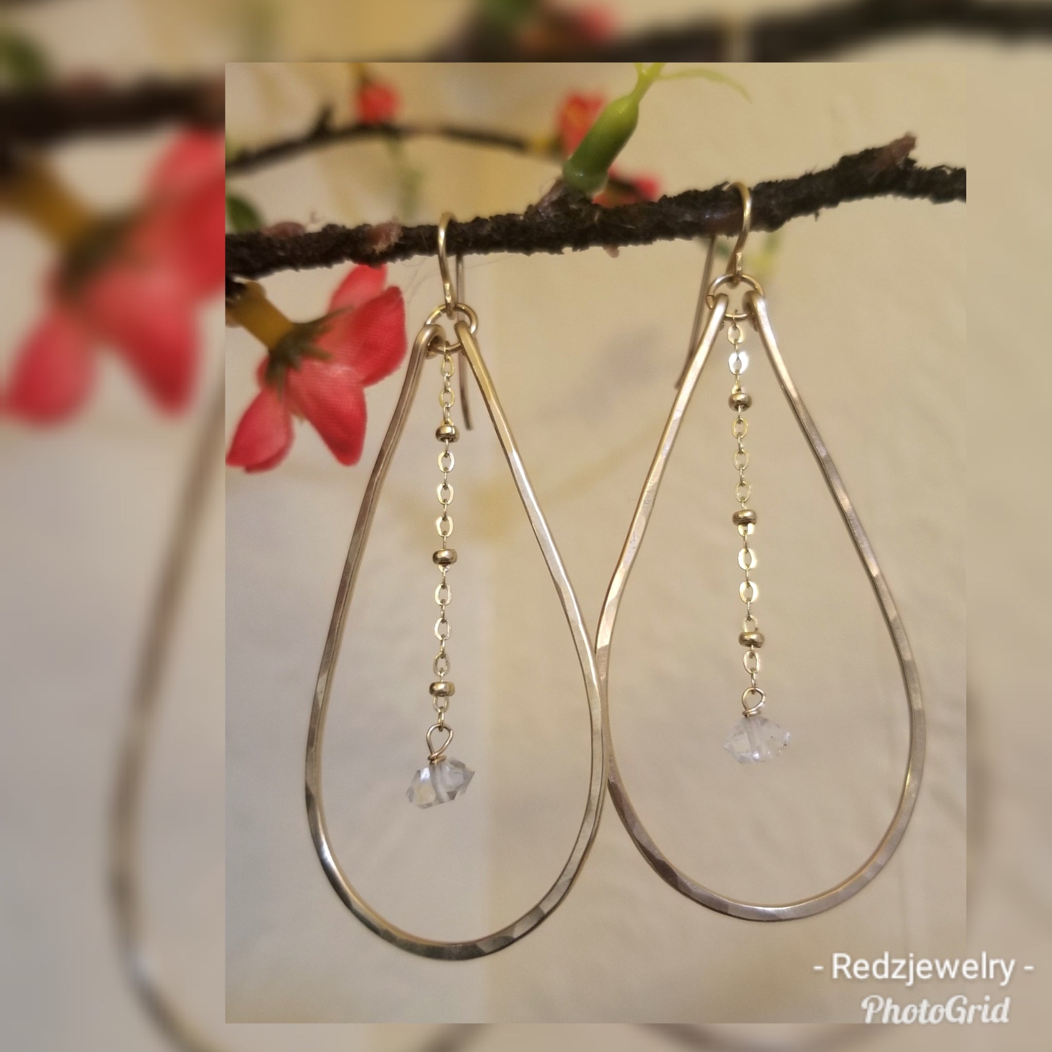 Dangling Herkimer Diamond Hoops