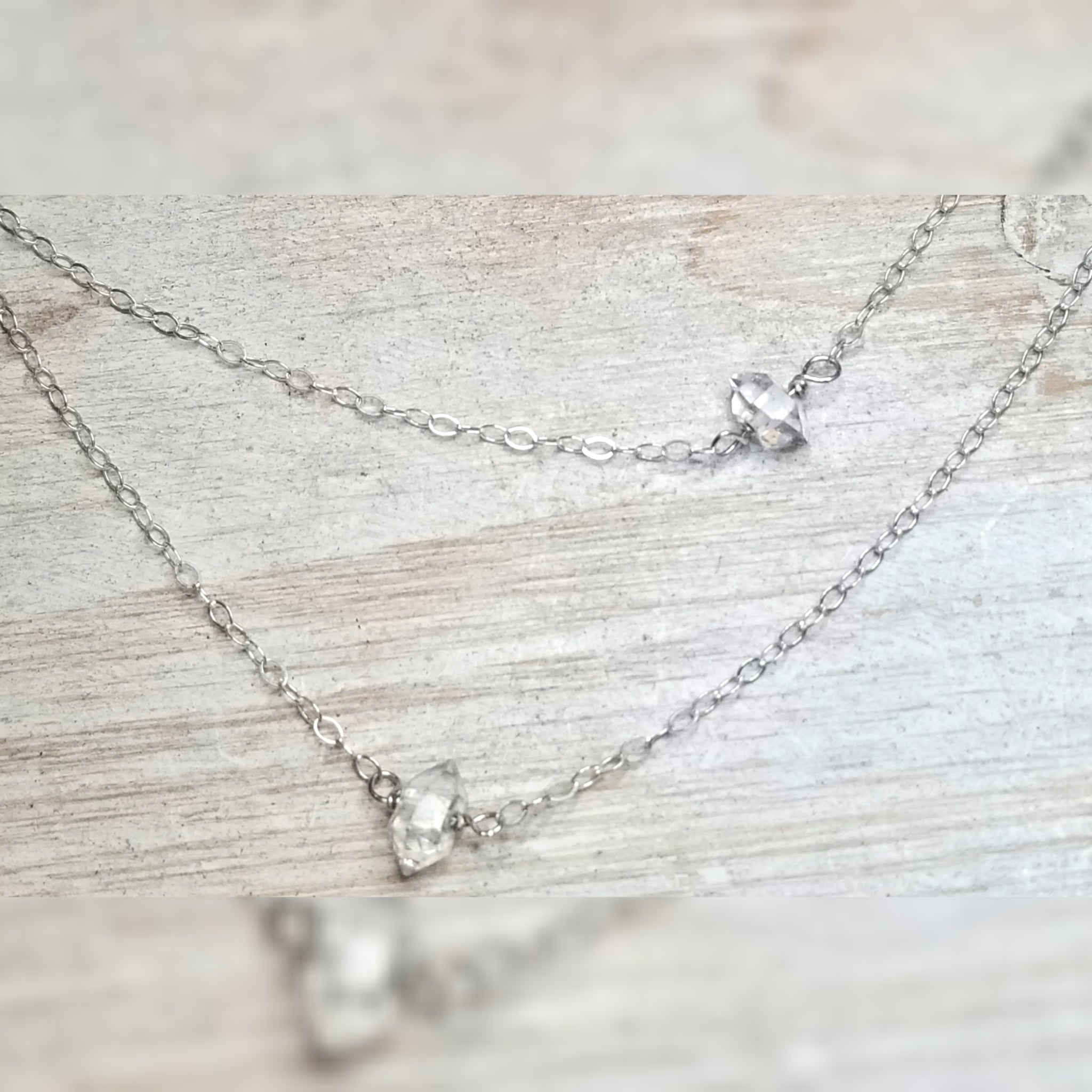 Minimalist style necklace with 2 beautiful Herkimer Diamonds. This style necklace can be worn with anything!