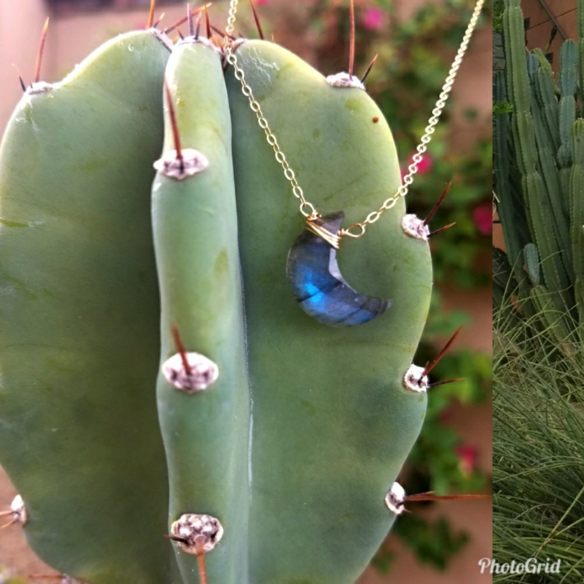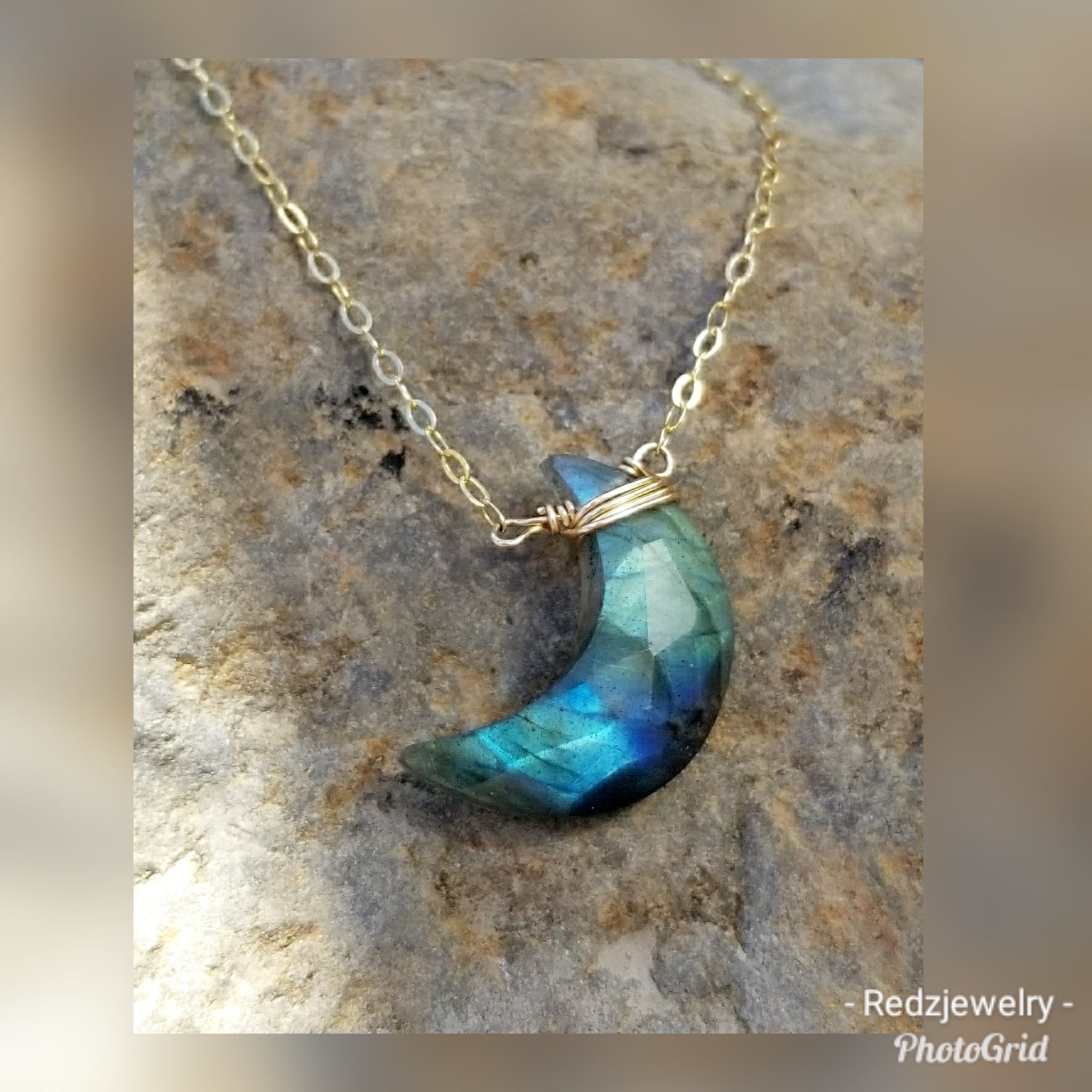 I had this Moon shape custom made out of my favorite stone labradorite .