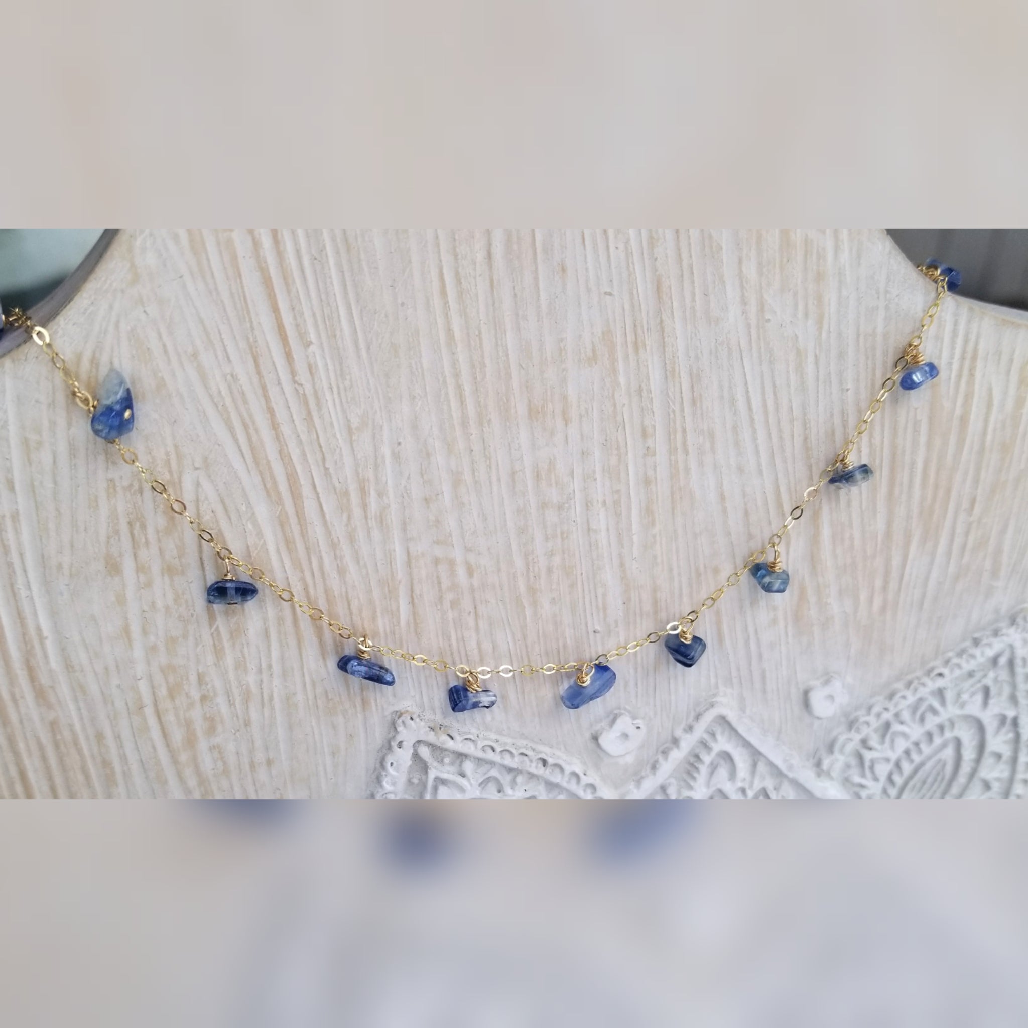 This is a fully customizable necklace…. you can request pretty much any stone! Shown in these photos in Kyanite, Carnelian, Pearls, labradorite & purple Opal