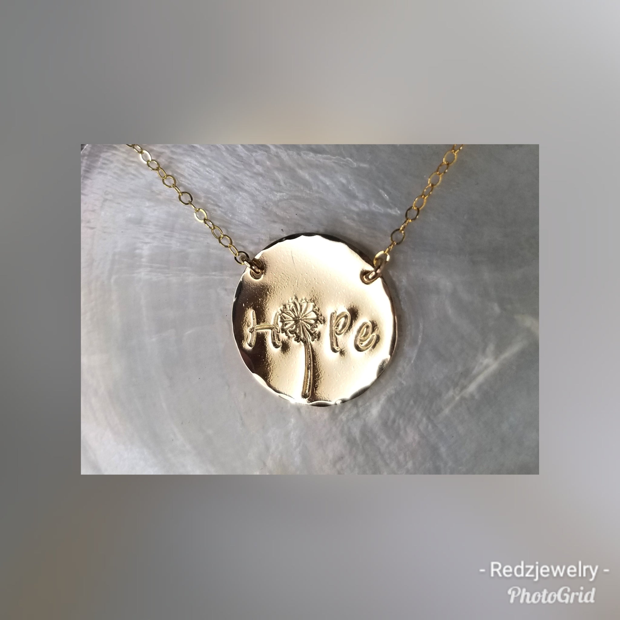 12.5 mm….1/2 inch coin necklace with the Word HOPE… with the Dandelion