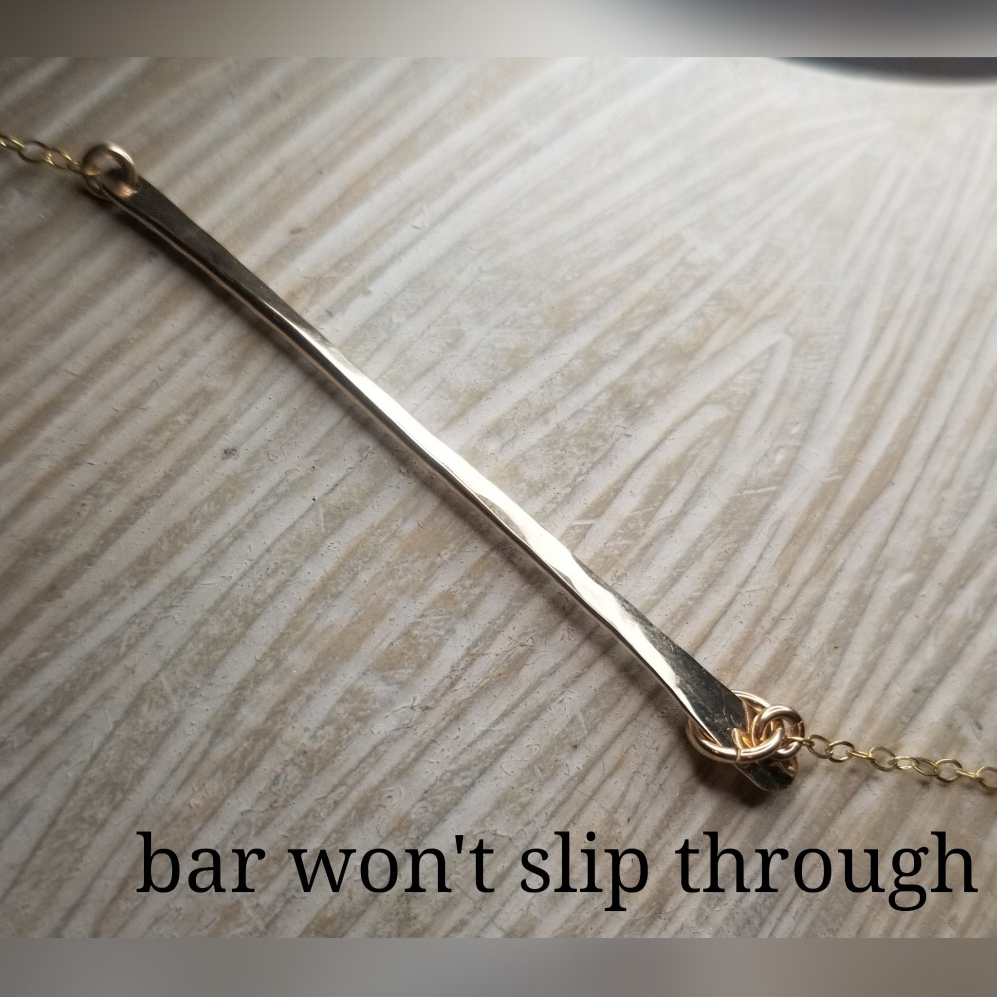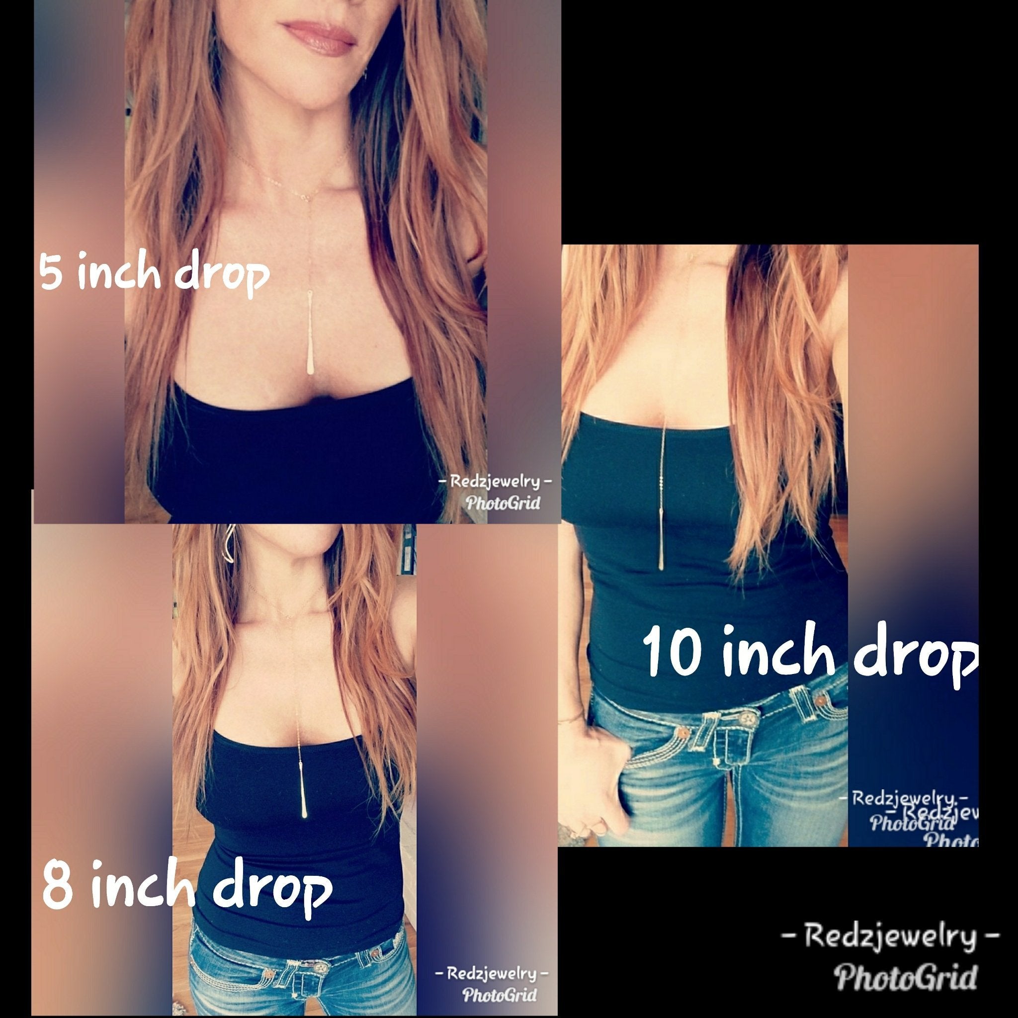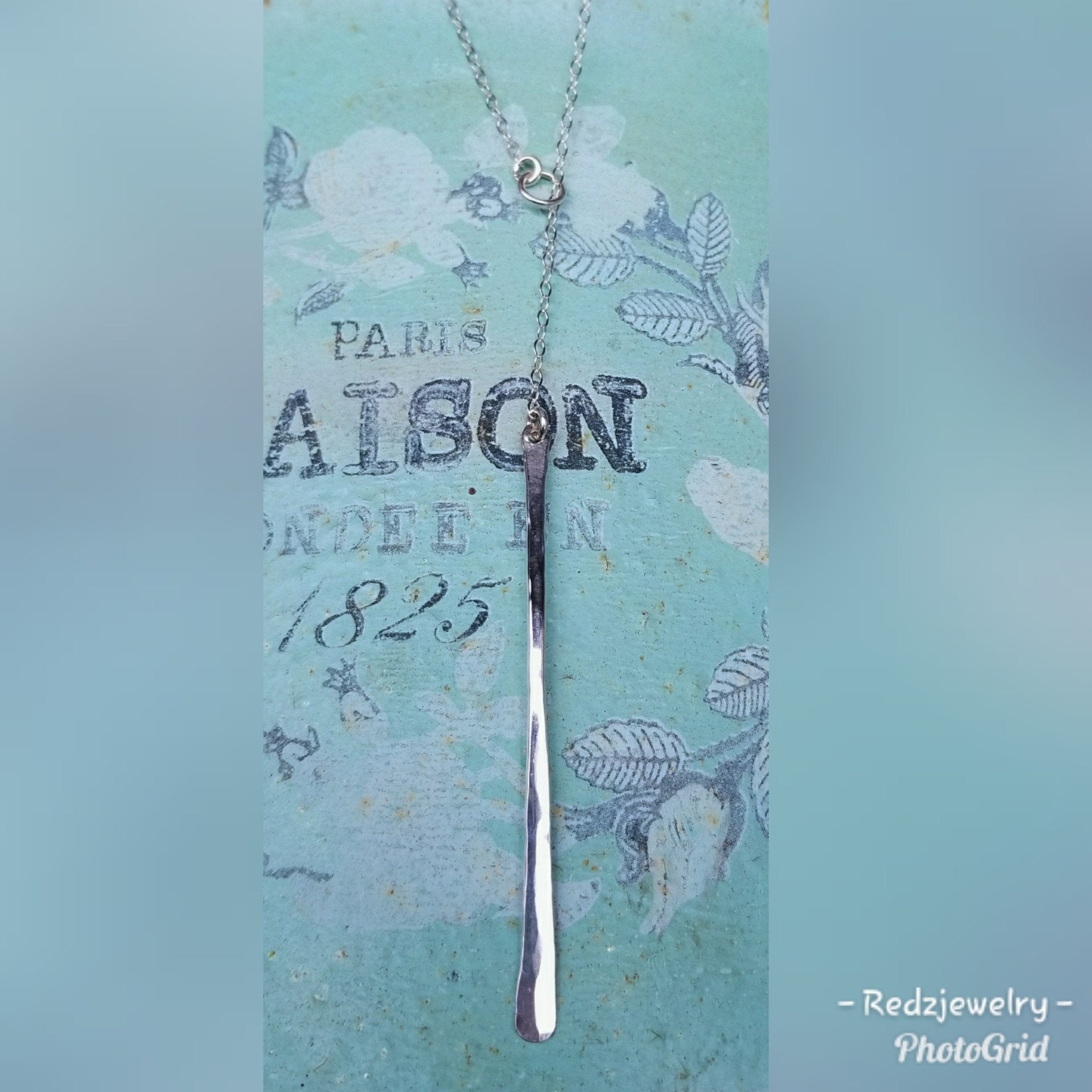Simple minimalist style necklace. This lariat necklace will go with anything! Hand forged Bar to catch the light with every movement. You can request this extra long with the bar dropping down 10inches, or at a medium length of a drop down of 8 inches. Or the short version dropping down at 5 inches. (Comes with over an inch of extender chain to adjust a little longer than what you order)