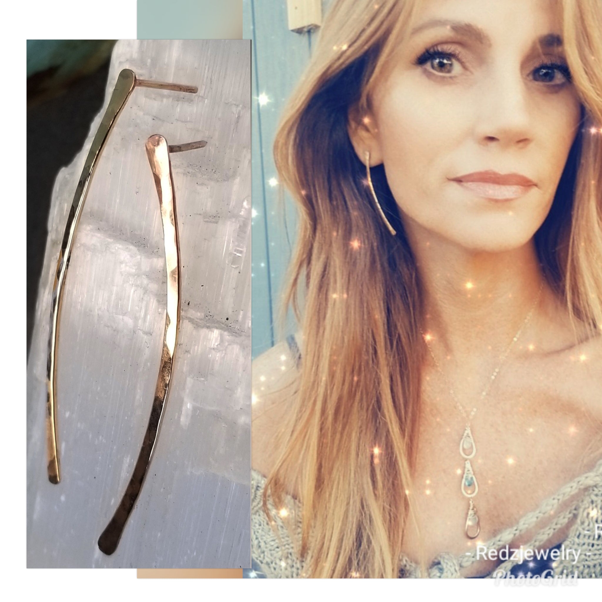 Simple, sleek, beautiful curved bar earrings made with soldered on posts.