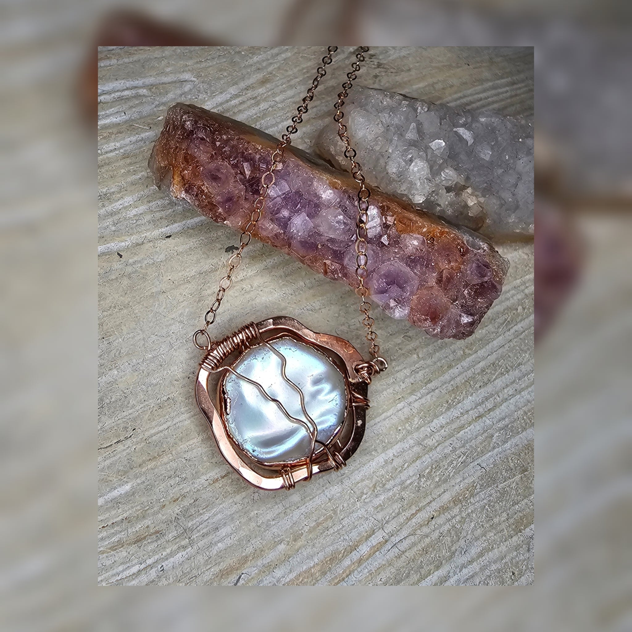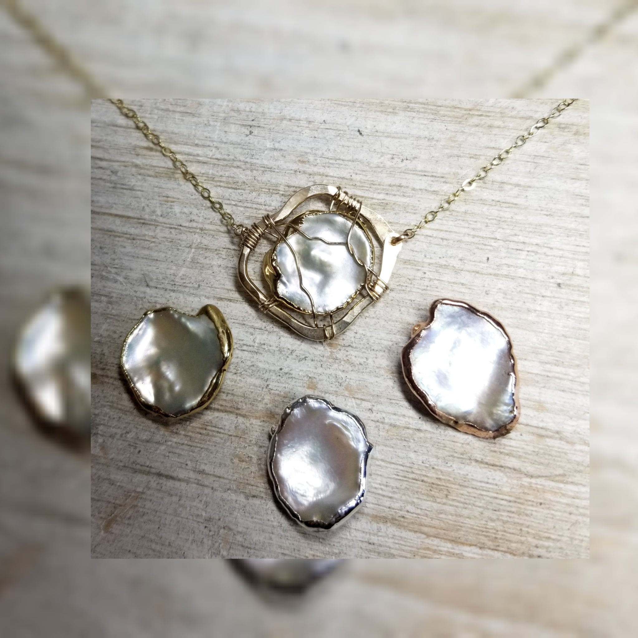Organic wrapped mother of pearl necklace