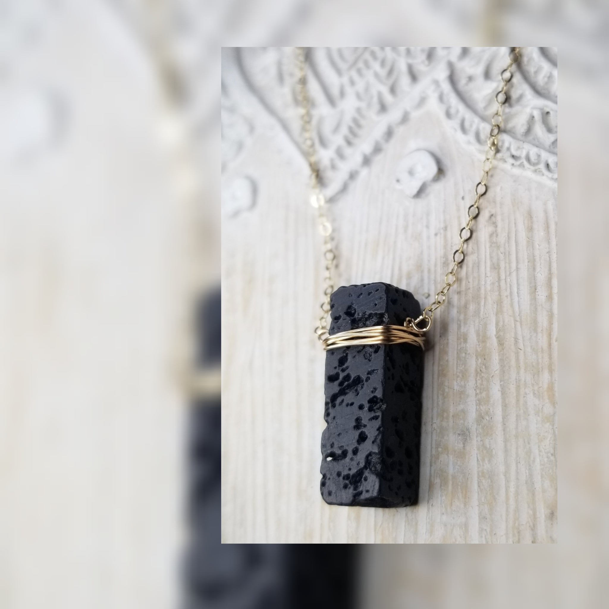 And a separate listing for a little “Black Bar Lava Rock Necklace”