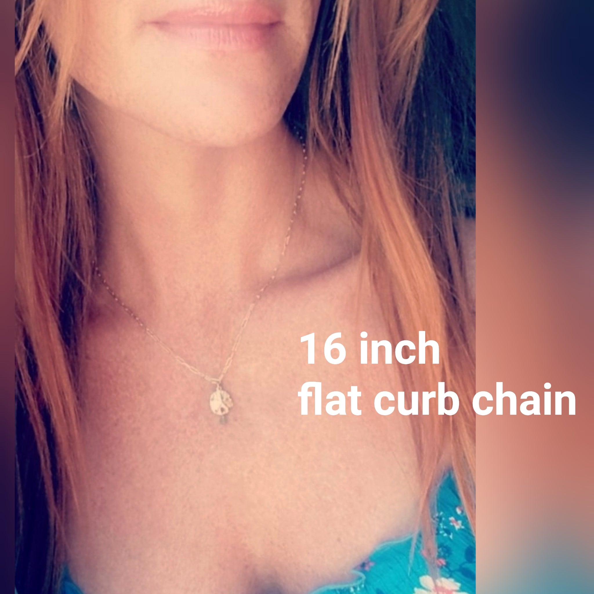 If you like the look of the Curb chain…be sure to order the “chain upgrade” for flat curb chain. It is available in 14kt gold fill & sterling. (Additional $10)