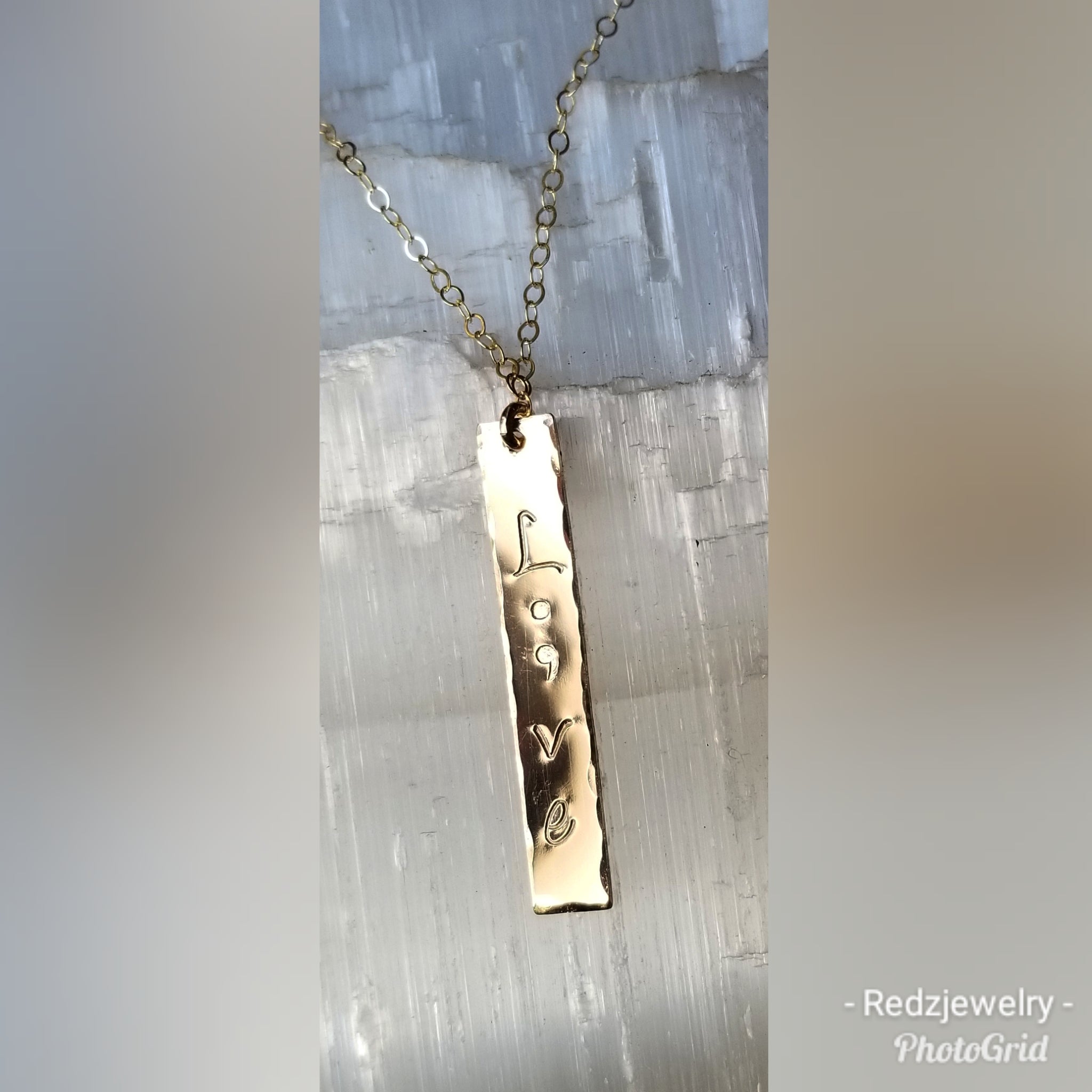You can request this bar necklace with the word Live or Alive. If Alive is chosen it will look exactly like the necklace shown, only with the A above.