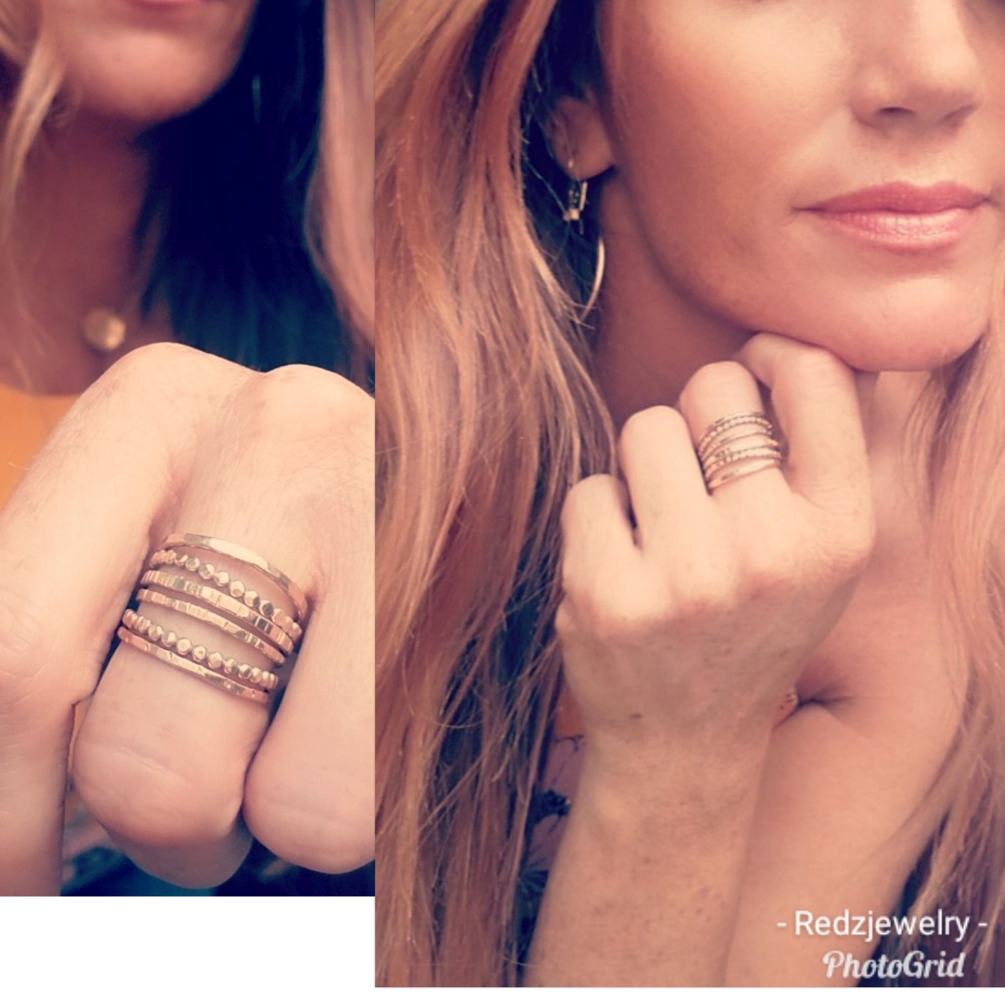 Set of 6 stacker rings all textured differently, as the photo shows. Can only be ordered in one size for them all. There is also a FIVE ring stacker set if you search Five ring.