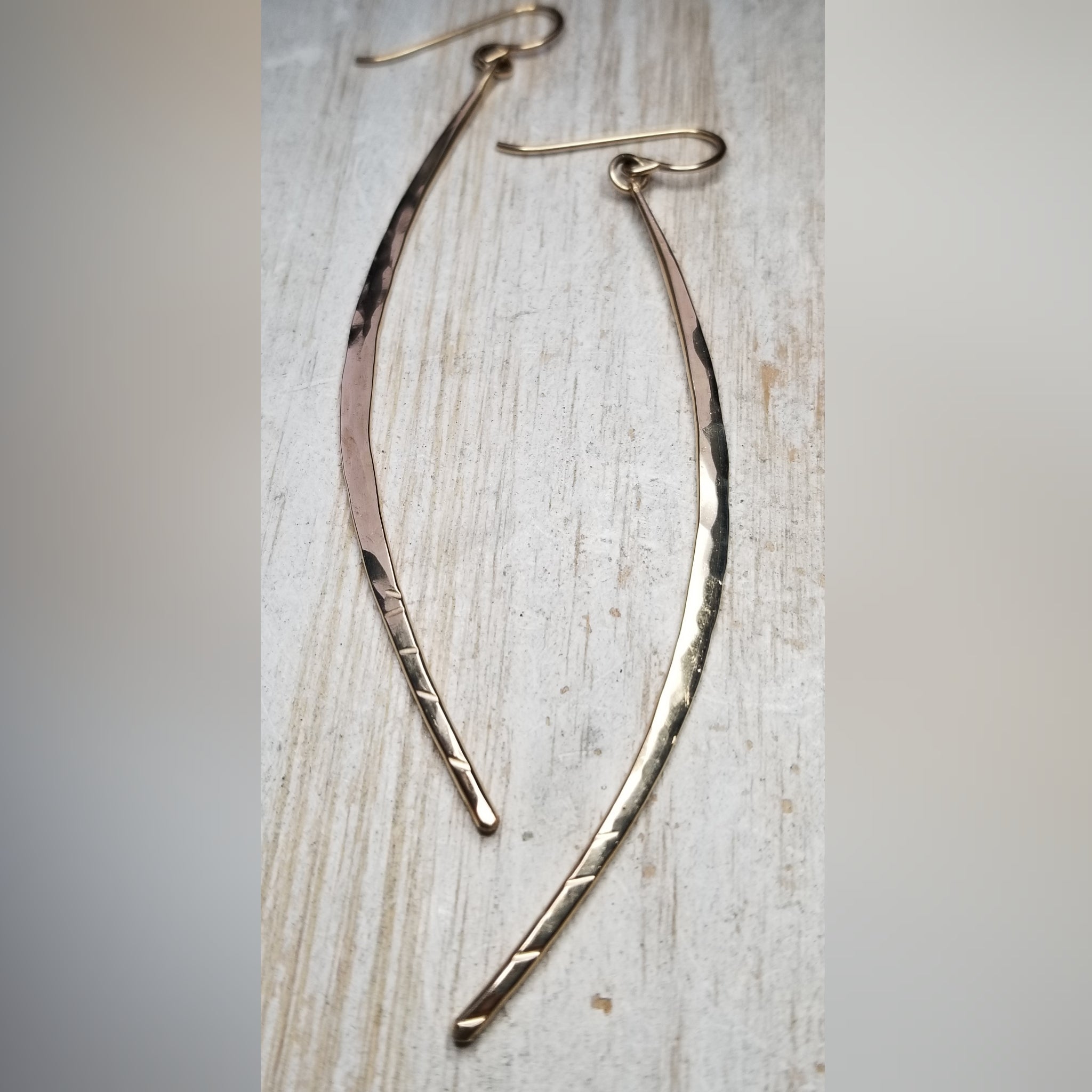 These earrings have a beautiful hand forged high polished finish with the added detail at the bottom.