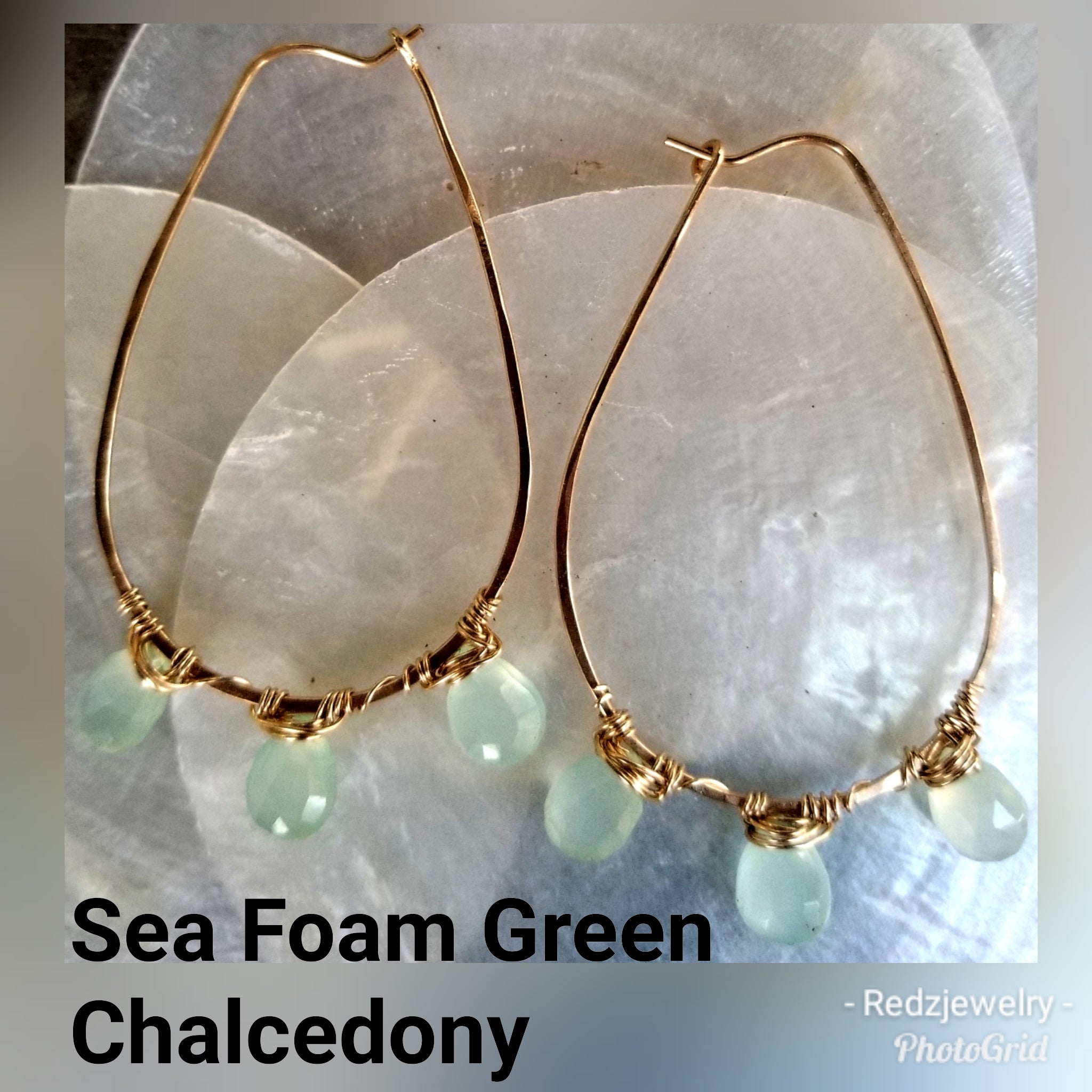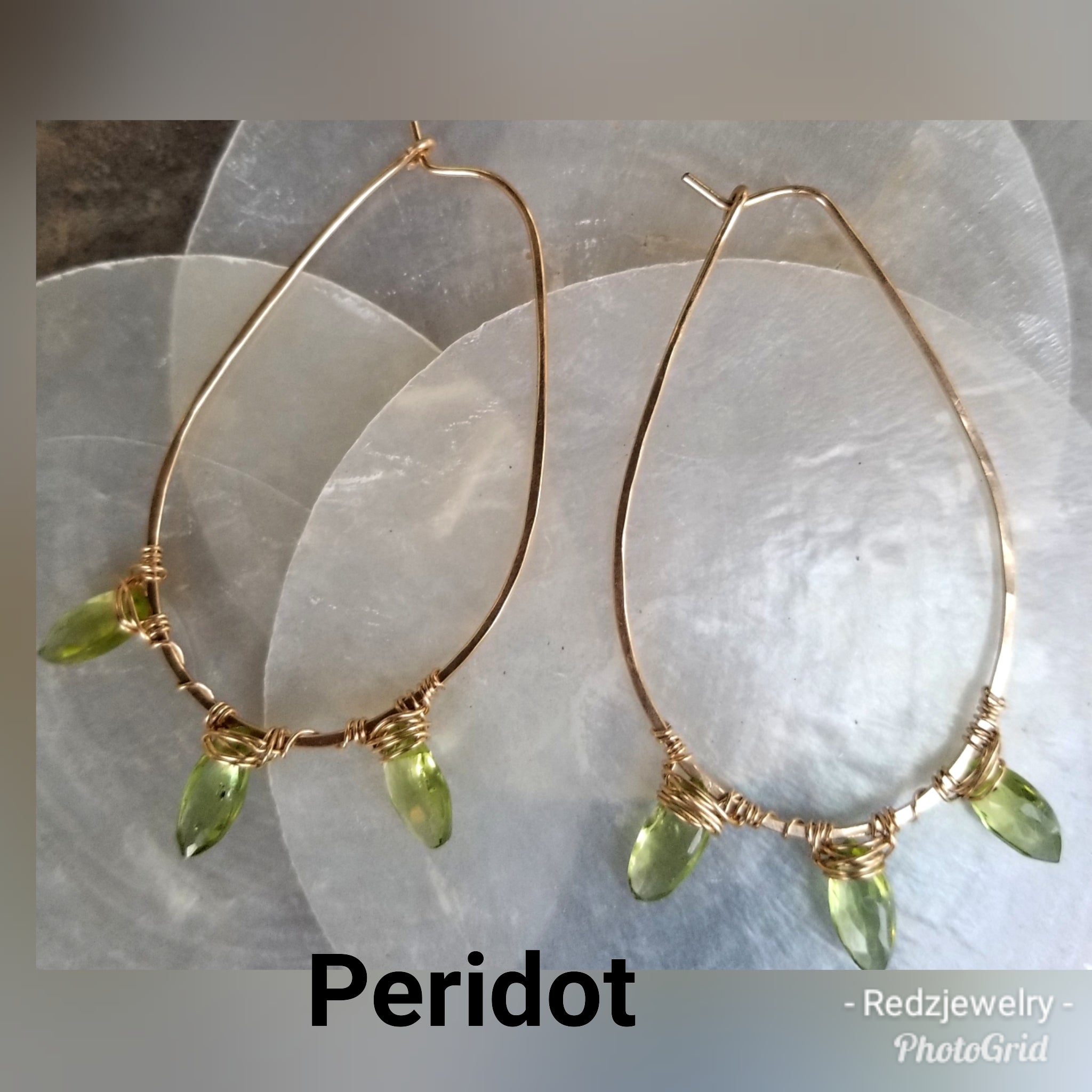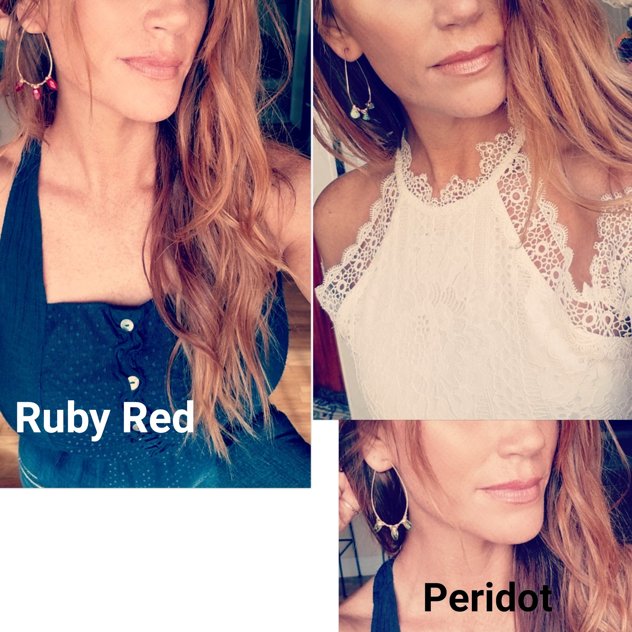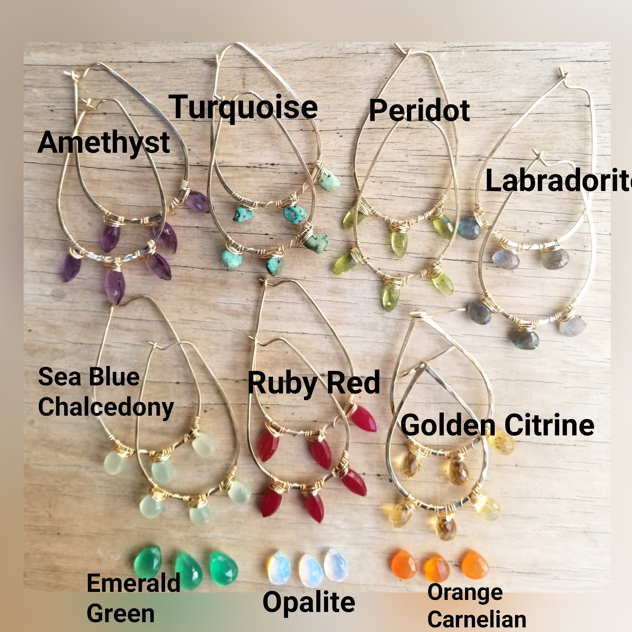 All the photos here show the color choices available…. but on the side facing hoops for color reference. The Golden Citrine Pair are the only pair in this series of photos that are made with the traditional forward facing Hoop.