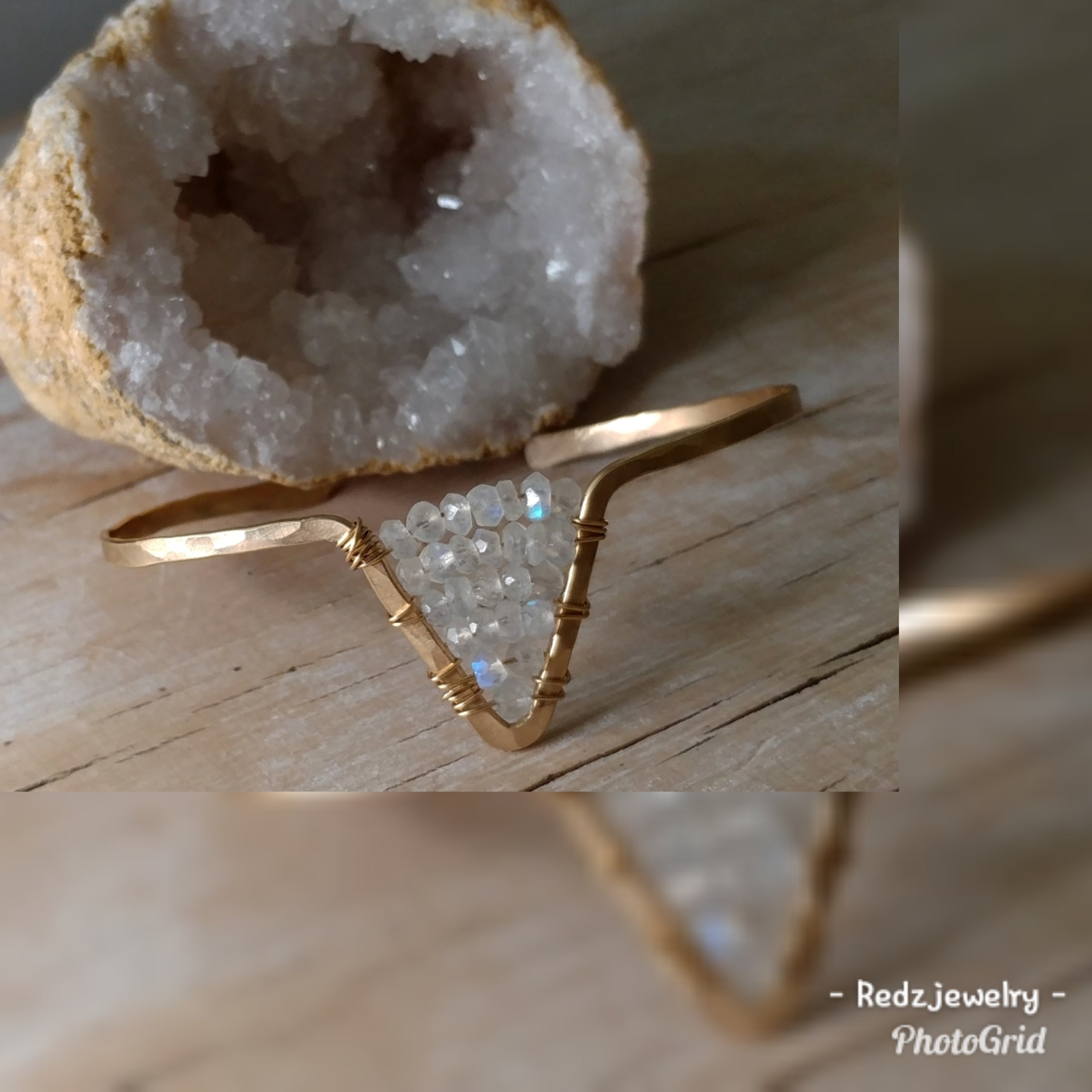 This bracelet is so pretty. Unique and Minimalist but eye catching. Please measure your wrist before you place your order. These are meant to fit snug right against your wrist. You will be able to slightly squeeze this bracelet to fit according to your wrist shape. Leaving your exact wrist measurement in notes will just help me to get the fit just right