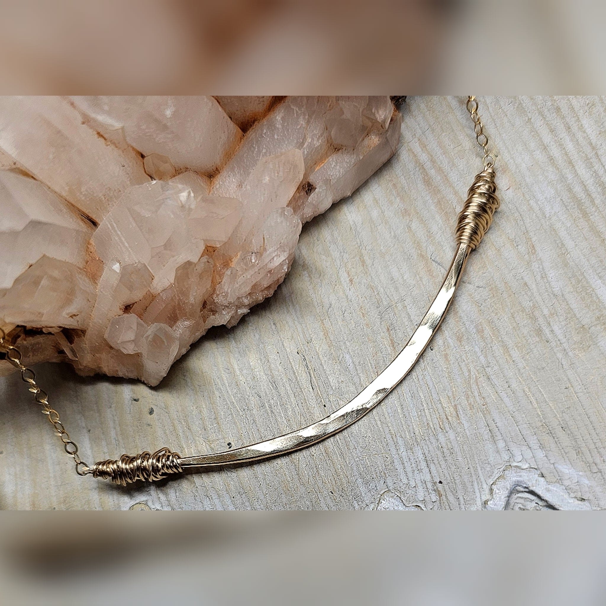 Simple bar necklace with the added detail of wire wrapped ends to give it that handmade appeal